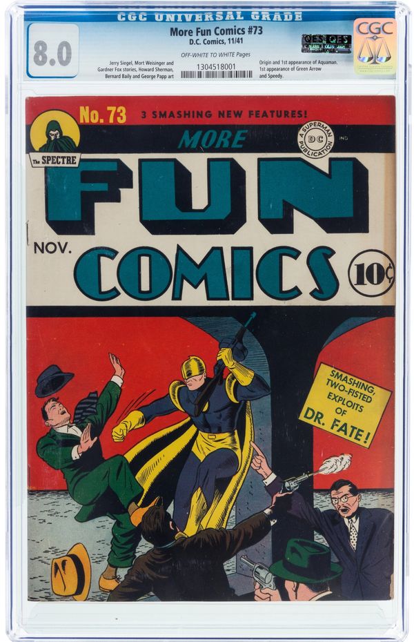 Our #1 book needs no introduction, Detective #27 along with Action #1 transcended the comic book hobby as we know it today. The first appearance of Batman, this comic has been considered among the top books in the hobby ever since comic collecting began. It enjoyed a brief tenure at #1 on Overstreet's Top Golden Age Books list, and while it's been ranked #2 behind Action Comics #1 (Superman's first appearance) for some years now, it is the one serious contender to dethrone Action #1 in years to come. Which character is more popular now, and which will be more popular in years to come, Batman or Superman? We think most people would say the former being Batman. The character's recognition factor thanks to his success in other media makes this copy an item with exceptionally broad appeal. Detective Comics #27 was the first comic to crack $1M mark, which was all the way back in 2009!